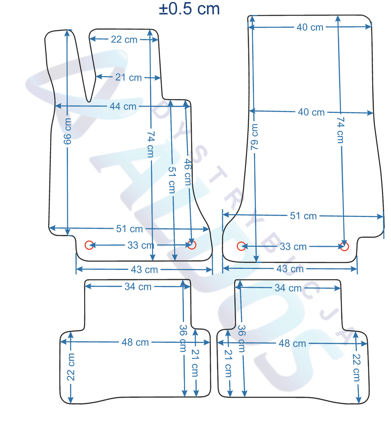 Dywaniki nie są oryginalnymi produktami OEM marki samochodu, a jedynie zamiennikami, które produkowane są przez Niemiecką Firmę PETEX.