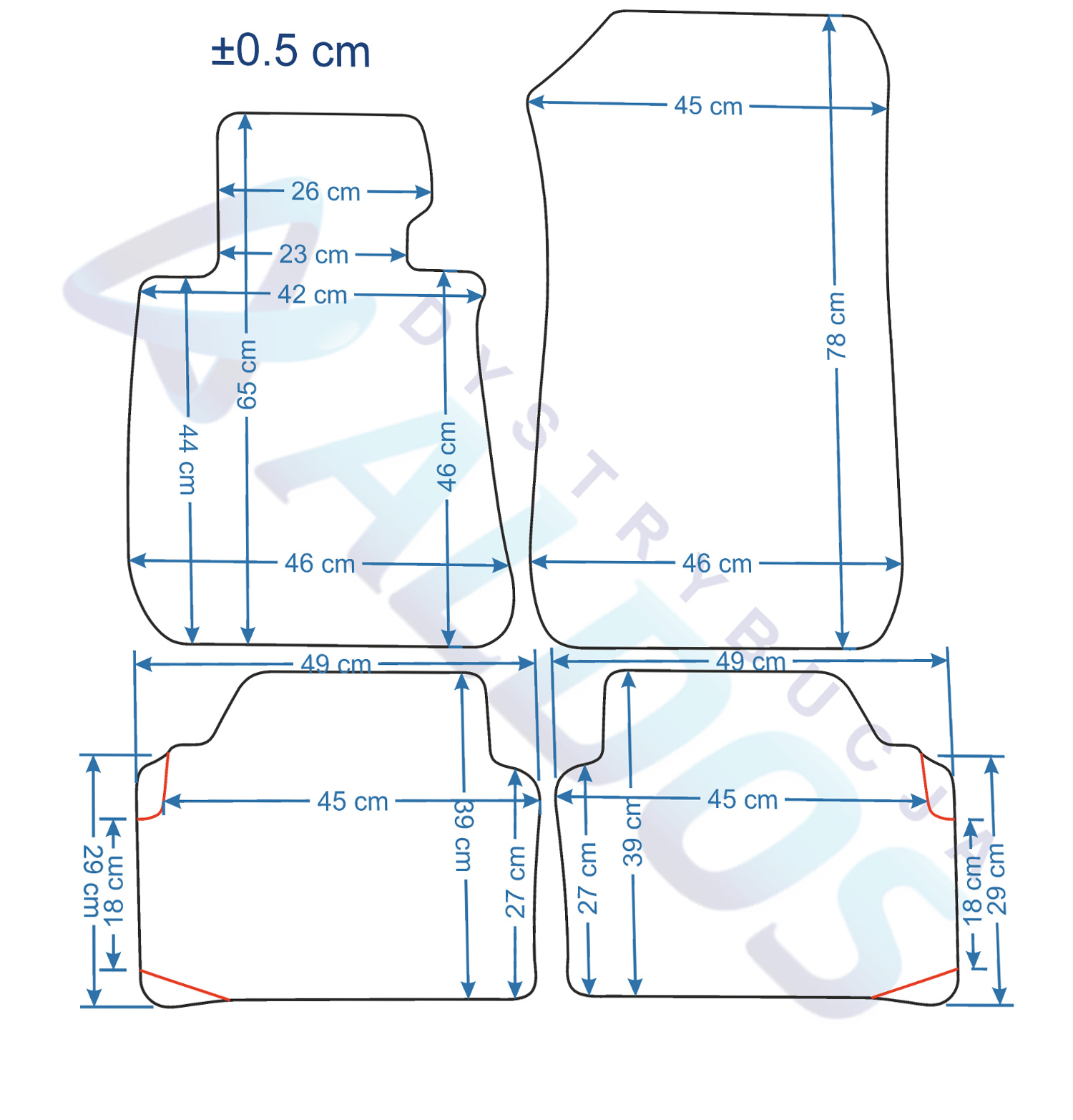 Dywaniki nie są oryginalnymi produktami OEM marki samochodu, a jedynie zamiennikami, które produkowane są przez Niemiecką Firmę PETEX.