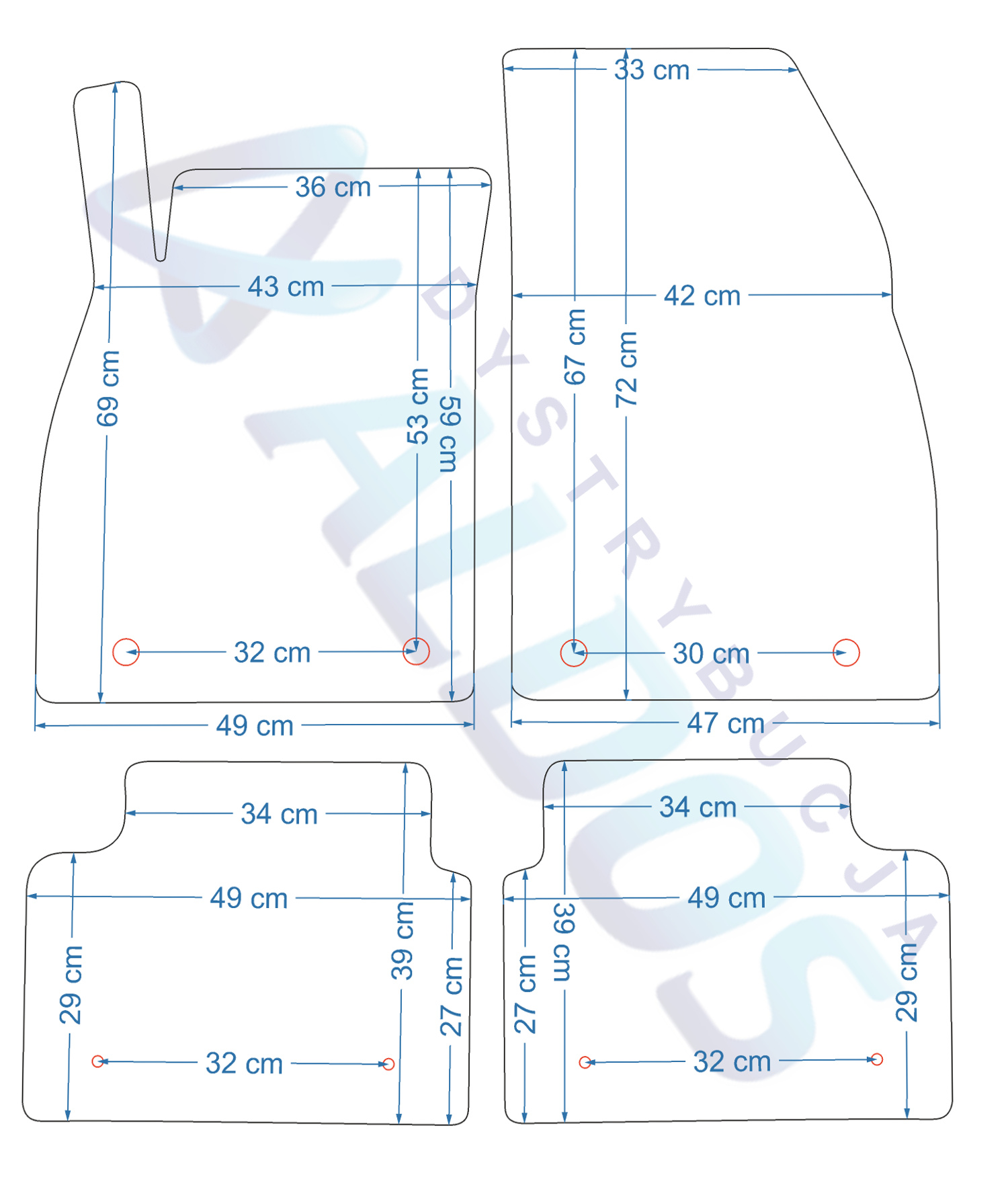 Dywaniki nie są oryginalnymi produktami OEM marki samochodu, a jedynie zamiennikami, które produkowane są przez Niemiecką Firmę PETEX.