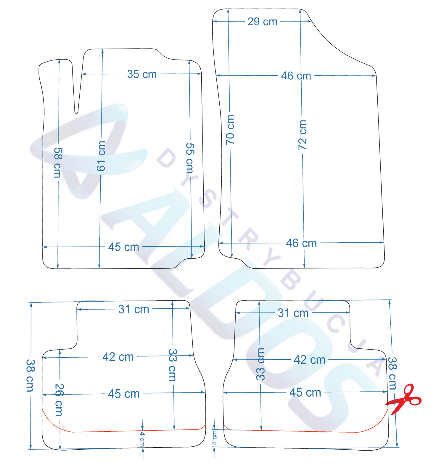 Dywaniki gumowe przeznaczone do: