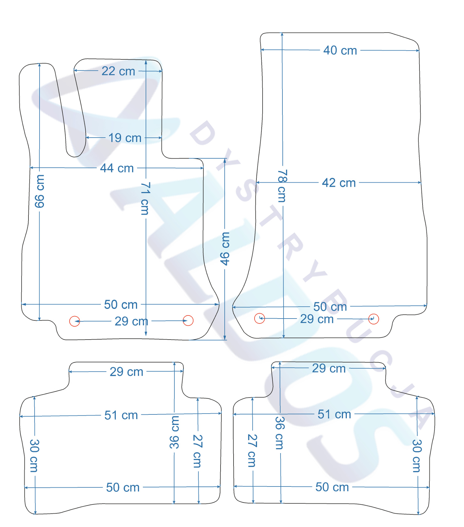 Dywaniki nie są oryginalnymi produktami OEM marki samochodu, a jedynie zamiennikami, które produkowane są przez Niemiecką Firmę PETEX.