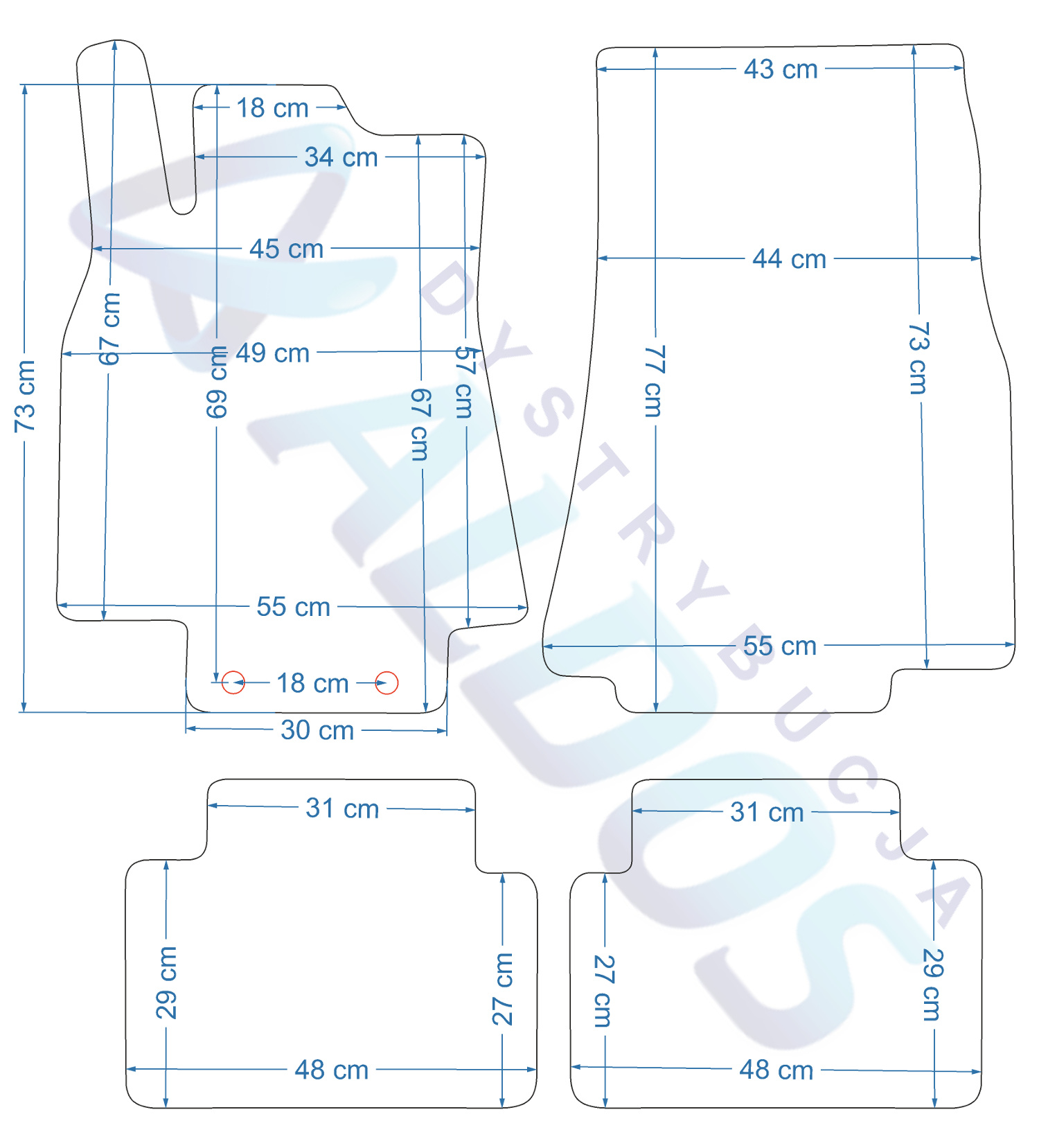 Dywaniki nie są oryginalnymi produktami OEM marki samochodu, a jedynie zamiennikami, które produkowane są przez Niemiecką Firmę PETEX.