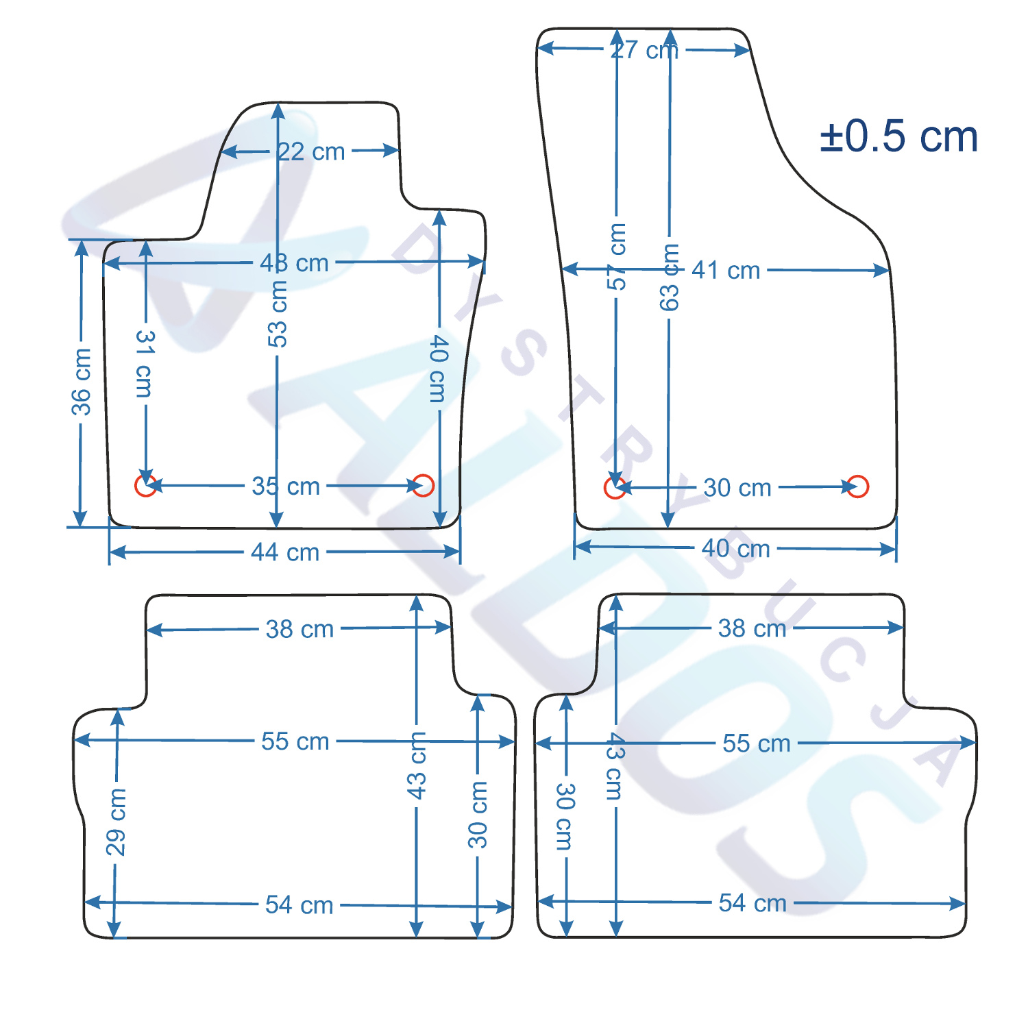 Dywaniki nie są oryginalnymi produktami OEM marki samochodu, a jedynie zamiennikami, które produkowane są przez Niemiecką Firmę PETEX.