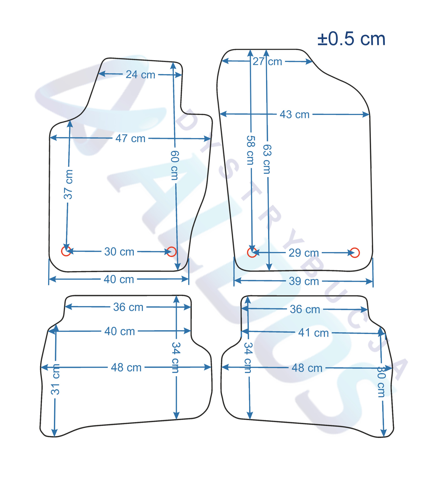 Dywaniki nie są oryginalnymi produktami OEM marki samochodu, a jedynie zamiennikami, które produkowane są przez Niemiecką Firmę PETEX.