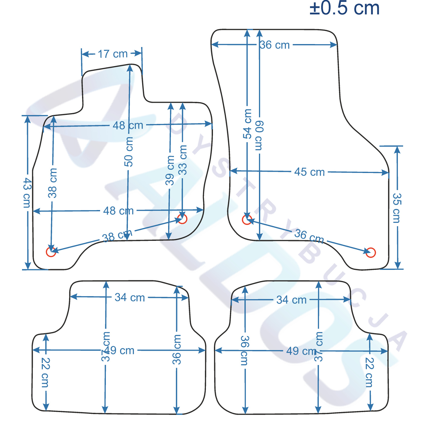 Dywaniki nie są oryginalnymi produktami OEM marki samochodu, a jedynie zamiennikami, które produkowane są przez Niemiecką Firmę PETEX.