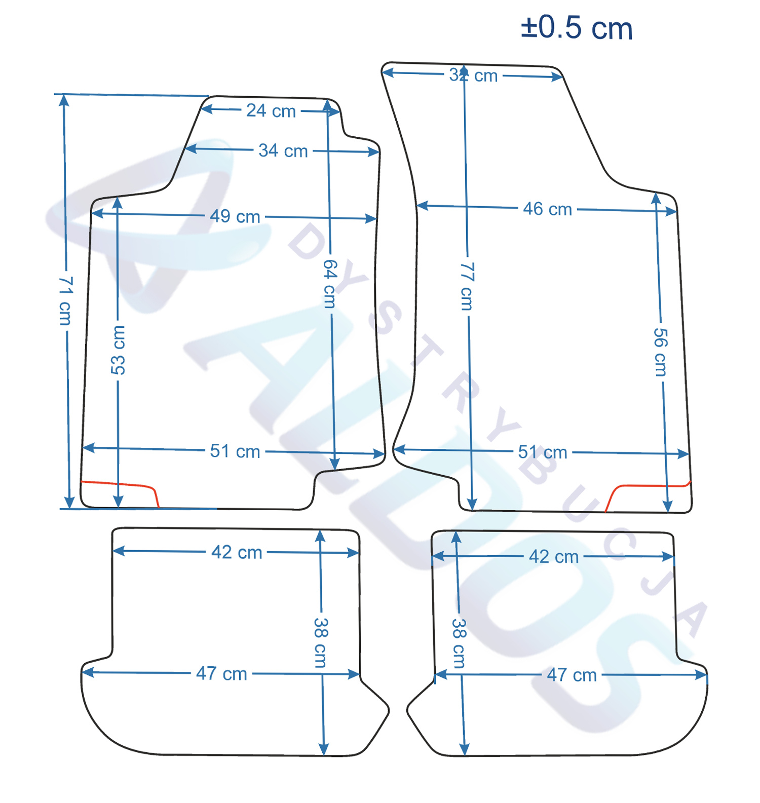Dywaniki nie są oryginalnymi produktami OEM marki samochodu, a jedynie zamiennikami, które produkowane są przez Niemiecką Firmę PETEX.