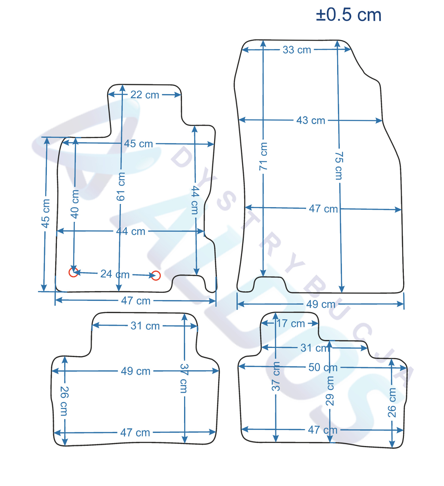 Dywaniki nie są oryginalnymi produktami OEM marki samochodu, a jedynie zamiennikami, które produkowane są przez Niemiecką Firmę PETEX.