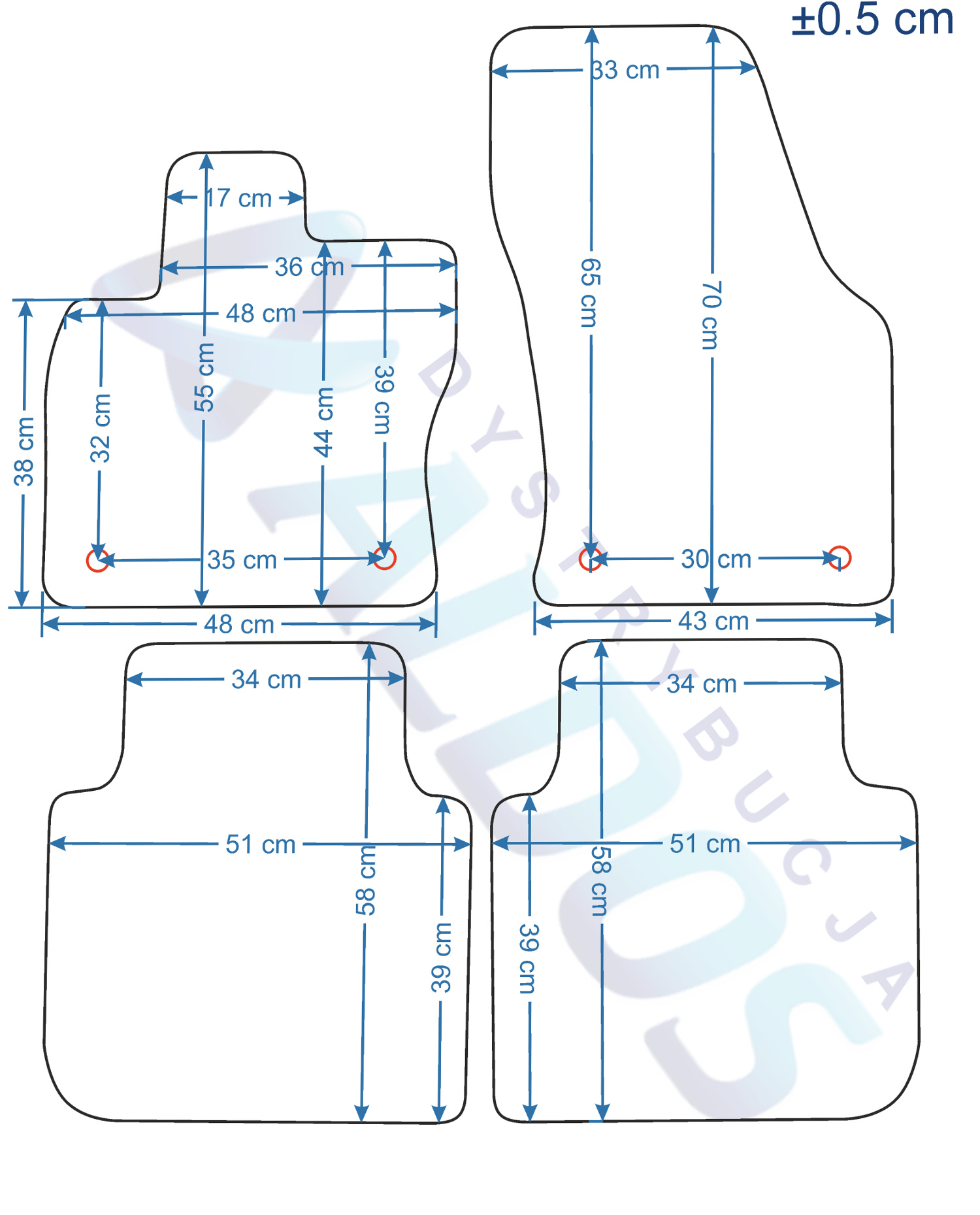 Dywaniki nie są oryginalnymi produktami OEM marki samochodu, a jedynie zamiennikami, które produkowane są przez Niemiecką Firmę PETEX.