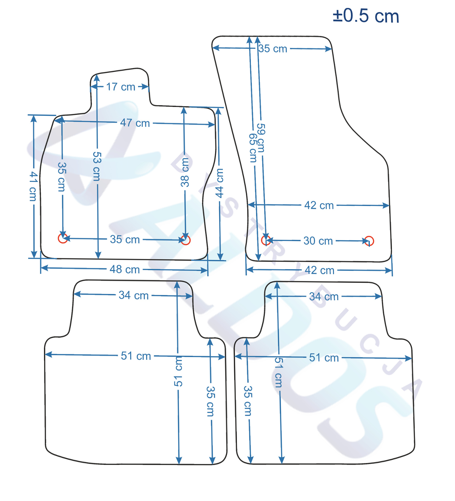 Dywaniki nie są oryginalnymi produktami OEM marki samochodu, a jedynie zamiennikami, które produkowane są przez Niemiecką Firmę PETEX.